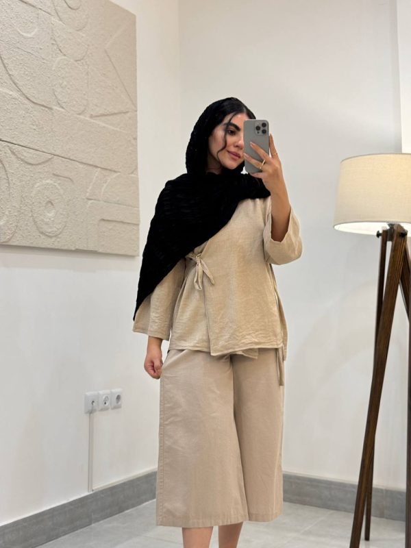 خانه پیراهن مانتو بندی زنانه کرم تیره